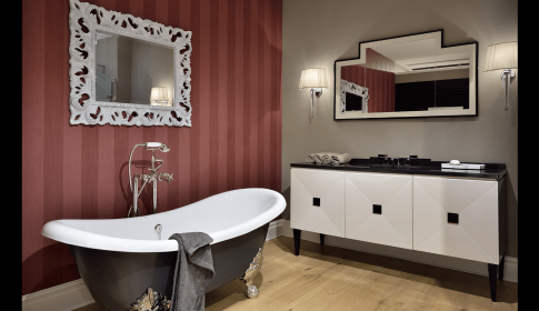 Kırmızı renk olarak gayet iddialı ve cesur bir renk olmasına rağmen çoğunluklu olarak banyolarda da kullanılmaktadır. Banyo dizayn örnekleri arasında yer alan kırmızı ağırlıklı banyolar, ortama renk katarken mekanın olduğundan daha ihtişamlı gözükmesini de sağlamaktadır.